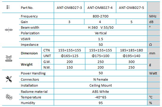 Indoor Omni Antenna is placed at the end of the signal distributed network and transmits the signal to coverage area where mobile user exists in building.