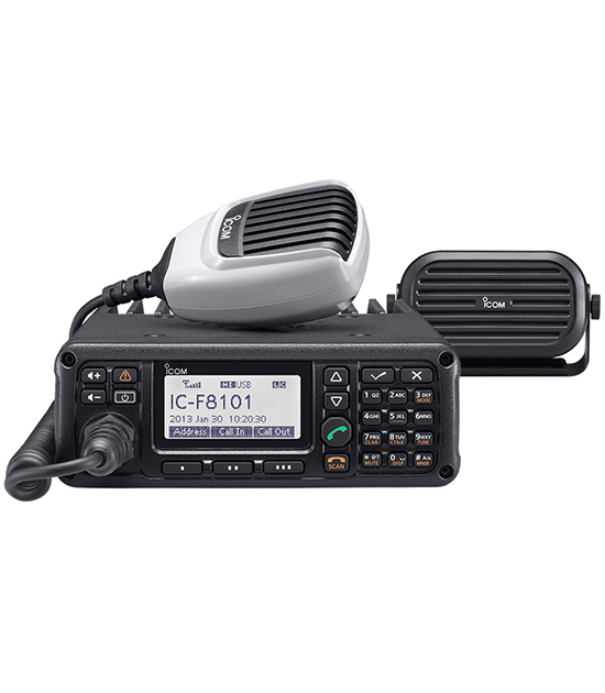 The IC-F8101 has 3 types of mute functions: call squelch, S-meter squelch and syllabic voice squelch. Call squelch opens the squelch only when receiving a Selcall or ALE call sent intentionally to this station and provides quiet standby.