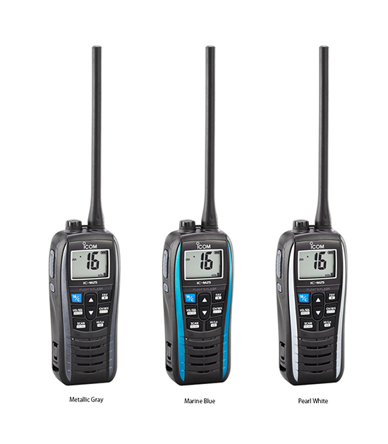 The IC-M25 floats and lets you know where it is with the flashing red LED light and LCD/key backlight.