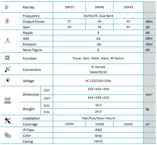 - Output power:37//40/43dBm