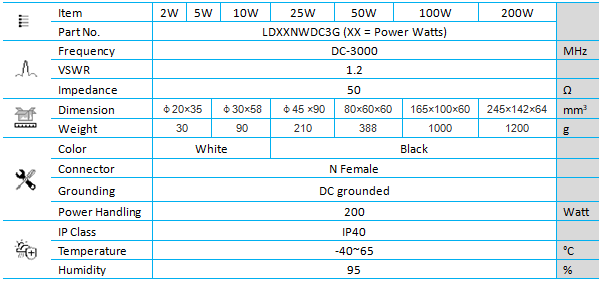 The coaxial loads either utilize a low noise chip resistor or rod resistor depending upon the required power rating or minimize temperature rise.