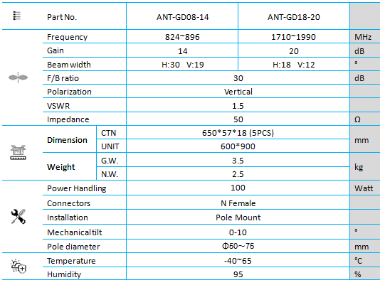 It has high directivity and gains with narrowest beam widths.