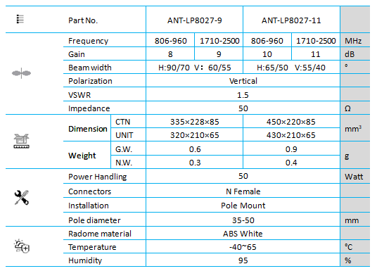 This antenna is a broadband directional narrow-beam antenna, which has log-periodic dipole arrays that are regularly repetitive as a logarithmic function of the excitation frequency.