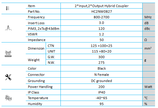 Hybrid couplers are designed to combine two wireless carriers to a single antenna feed or cable.