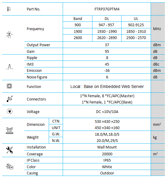 - Output power:37dBm