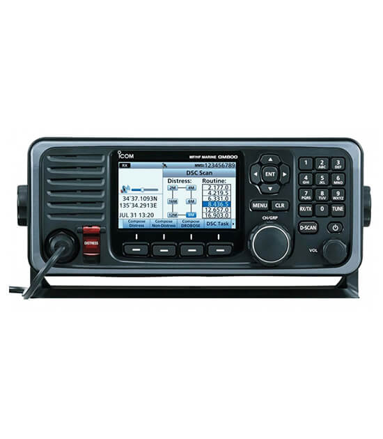 The GM800 meets ITU-R M.493-13 DSC. The dedicated DSC watch-keeping receiver continuously scans the six distress channels in rotation. A total of 100 MMSI members for DSC calls can stored with a 10-character ID name. The DSC Multitask function shows up to seven DSC procedures. The GM800 is also capable of sending a distress relay call.