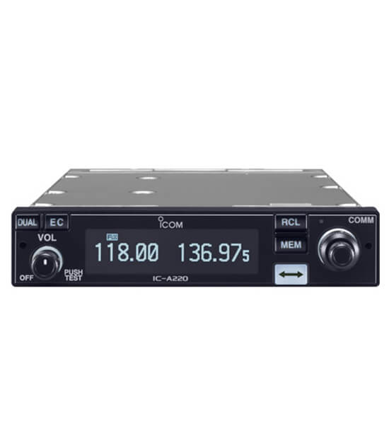 Icom’s A220 panel mount transceiver is a popular fit with experimental and light sport pilots. This ground to air transceiver has the capability to work on both 8.33 kHz and 25 kHz channel spacing frequencies. It features the brightest OLED (Organic Light Emitting Diode) display on the market offering many advantages in brightness, vividness, high contrast, wide viewing angle and response time compared to a conventional display. The A220 also features a built in 2 station intercom, 12 or 24 volt compatible, automatic squelch and GPS memory function.
