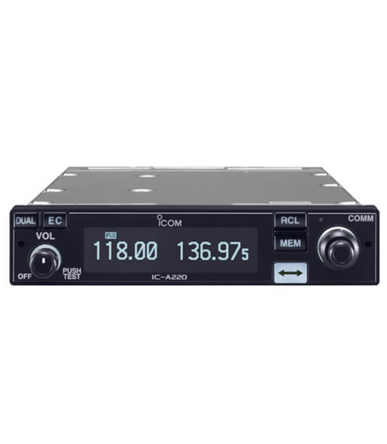 Icom’s A220 panel mount transceiver is a popular fit with experimental and light sport pilots. The TSO approved version will work for all certified part 23 aircraft. This air to ground transceiver has the capability to work on both 8.33 kHz and 25 kHz channel spacing frequencies.