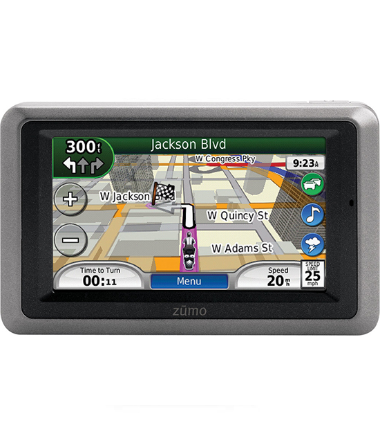 zūmo 665LM has TracBack so you can navigate right back to where you started, along the same route. Exit Services list gas stations and restaurants for upcoming exits.