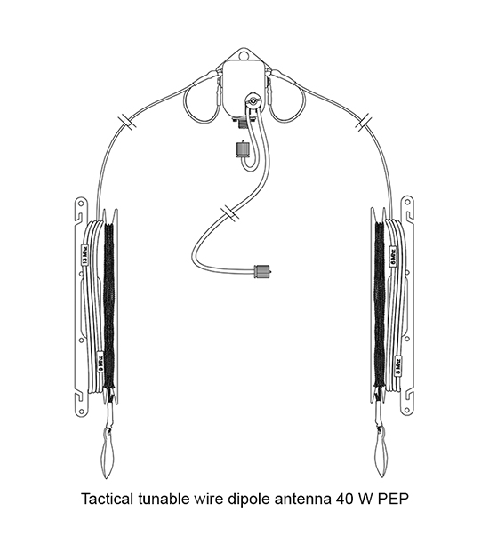 For low power portable/manpack and temporary base station operation up to 40W PEP, either a tactical broadband dipole antenna P/N BCA204026 or tactical tunable wire dipole antenna P/N BCA20402 can be used.