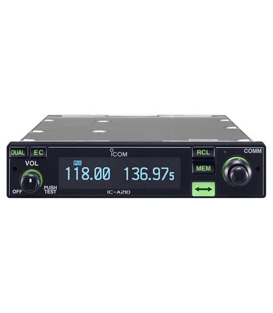 The built-in DC-DC converter accepts a 12/24V DC power source. The IC-A210 is easily installed in most airplanes or vehicles.