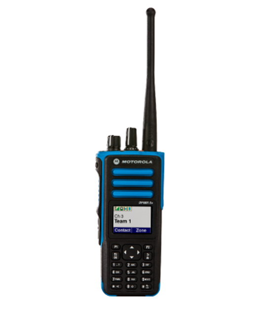 Available in UHF and VHF frequency bands, the DP4801 Ex features a 5-line display, full keypad, up to 1,000 channel capacity, five programmable buttons, emergency button, man down and lone worker functions and IP67 rating for submersibility.